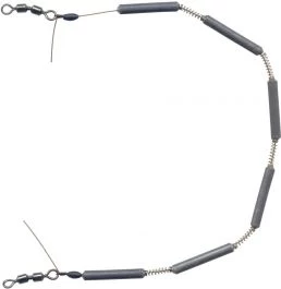 De lood veerketting is voorzien van 6 loodjes, en 5 micro veertjes. Beide zijden van de 0.22mm lijn zijn voorzien van een stopper en een twee weg wartel. Door het ratelende geluid wat de veerketting maakt, kan de forel uw aas niet weerstaan.